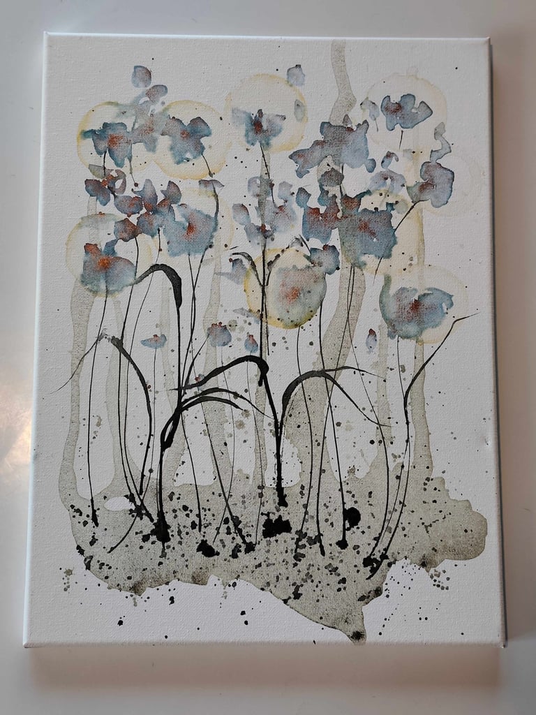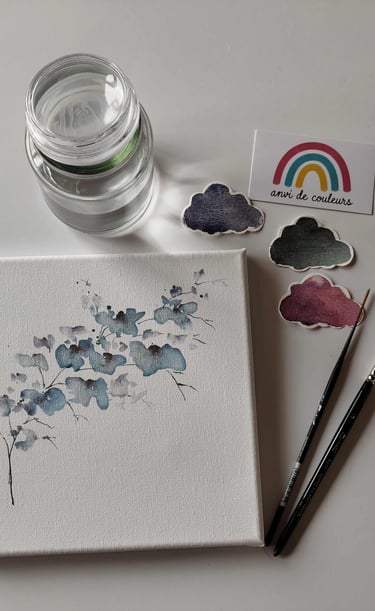 Chaque tableau est unique, né de mes aquarelles.